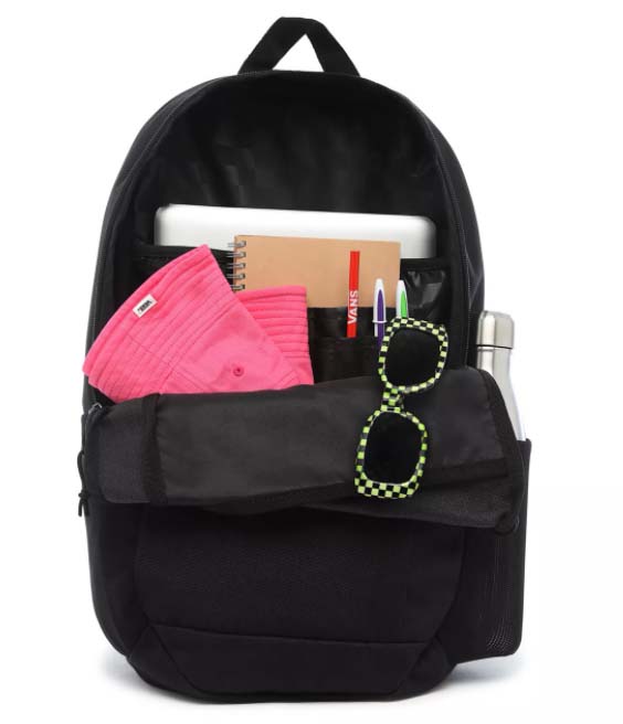 Absolutní klasika mezi batohy Vans. K dispozici s mnoha různými vzory textilu a v mnoha různých barvách. Potisk batohu se mění i s časem a mnoho z nich je limitovaných, proto neváhejte zakoupit včas, pokud se vám některý design náramně líbí. 22l batoh Vans Old Skool je ten nejednodušší batoh, jaký si můžeme představit (tím rozhodně neztrácí na kvalitě). Disponuje jedním velkým kompartmentem na zip a jednou přední kapsoum která obsahuje užitečný organizér na pera, karty, apod. Na přední kapse v pravém spodním rohu je umístěn lash tab (= nášivka ve tvaru (koso)čtverce). Přesto že v dnešní době plní spíše designový účel, může sloužit i k účelu původnímu (tedy uvazování věcí na batoh). Batoh Vans Old Skool se pyšní velmi komfortními ramenními popruhy, které jsou stejně jako záda batohu, dostatečně polstrovaná. Batoh je díky tomu vhodný i pro nenáročné studenty do školy. Nechybí ani poutko na zavěšení. Za rozumnou cenu, dostáváte jednoduchý batoh pro všestranné účely. Uživatelé shledávají batoh perfektní do školy a na běžný batoh přiznávají jeho opravdu komfortní nošení.