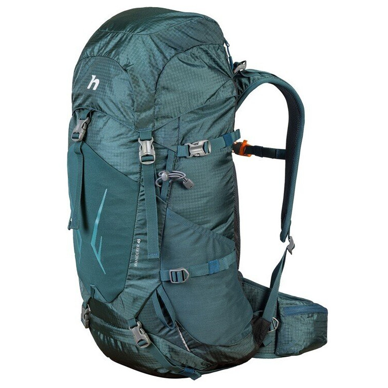 Krosna nebo chcete-li velký batoh Hannah Wanderer je ideální na túru do hor i na dovolenou, kdy se vám nechce tahat s kufrem. Nemusíte se s ním bát delších tras, protože se výborně nosí a na zádech drží perfektně díky speciálnímu posuvnému zádovému systému Vario. Délku zad si jednoduše nastavíte na velikost své postavy, pomocí posuvného panelu s regulací na suchý zip. K tělu si krosnu připoutáte bederním pásem, na němž nechybí dvě kapsy na drobnosti. Záda krosny jsou vyztužená a ramenní popruhy polstrované, takže budou pohodlné i při dlouhém nošení. Nechybí ani kapsa na hydrovak s vývodem na hadičku, hrudní popruh s pohotovostní píšťalkou a kompresní popruhy po stranách krosny, kterými její obsah stáhnete a zpevníte pro dokonalé rozložení váhy a stabilitu.